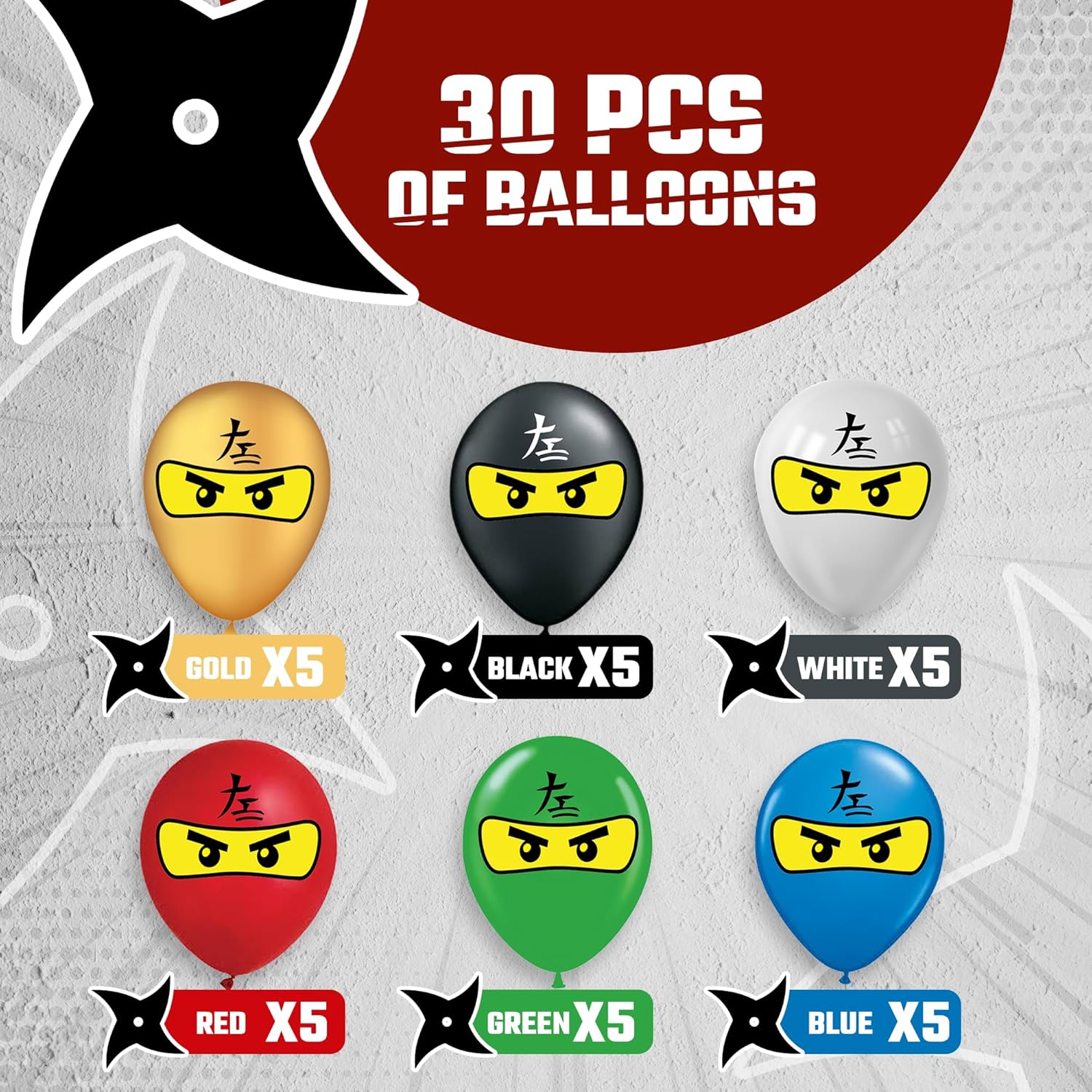 Ninja Superhero 12" Birthday Balloons 30 Pcs | All Ninja Balloons Colors
